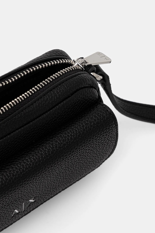 Небольшая сумочка из коллекции Armani Exchange. Застегивается на молнию, выполнена из экокожи. – Проект Armani Sustainability Project – Эта модель изготовлена из органических и переработанных материалов. Кроме того, в процессе производства используется меньше воды и энергии. - Застежка-молния. - Несъемный, нерегулируемый ремешок. - Не подходит для формата А4. - Передние карманы с магнитной застежкой. - Входящий в комплект тканевый чехол защищает изделие от пыли. - Внутренний накладной карман. - Минимальная длина ремешка: 113 см. - Максимальная длина ремня: 126 см. - Глубина: 4 см. - Высота: 11,5 см. - Ширина у основания: 18 см.