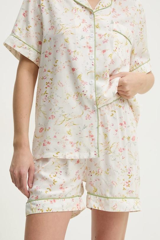 Пижама из коллекции Answear.LAB. Изготовлена из ткани с рисунком. Изготовлена из дышащего вискозного материала. - Свободный крой, обеспечивающий полную свободу движений. - Пижама включает в себя рубашку и шорты. - Острый вырез с воротником. - Короткий рукав. - Крой рукава со спущенной линией плеча не ограничивает подвижность. - Накладной карман на груди. - Удобная застежка на кнопки позволяет легко надевать и снимать. - Высокая талия обеспечивает комфорт во время занятий спортом и позволяет визуально стройнить фигуру. - Эластичный пояс предотвращает скольжение во время движения. - Свободная нога. - Тонкая, слегка эластичная ткань.