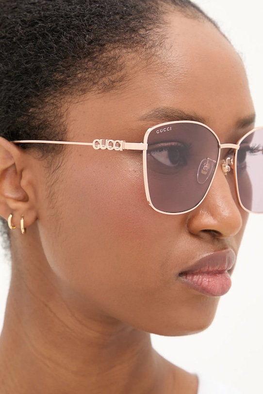 Солнцезащитные очки из коллекции Gucci. Эта модель с гладкими линзами и металлической оправой оснащена защитой UV 400. Полученный вами футляр может отличаться от изображенного на фотографии. Футляры отправляются производителем случайным образом, поэтому выбрать конкретный футляр невозможно. - Форма оправы: кошачьи глаза. - Фильтр UV 400 обеспечивает максимальную защиту от солнечного излучения. - Cat.2 (пропускает 18–43% света) — линзы со средней степенью затемнения. Очки с фильтром Cat.2 подходят для дней с низкой интенсивностью солнечного света. - В комплект модели входят чехол и салфетка для протирки очков. - Ширина рамы: 145 мм. - Ширина линзы: 60 мм.