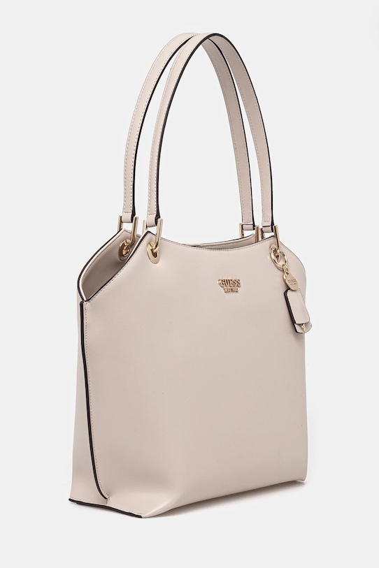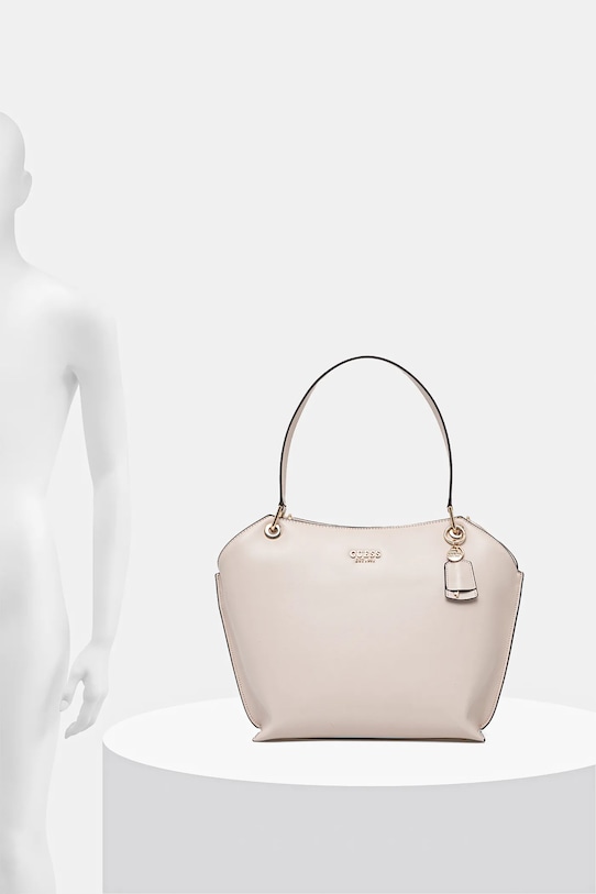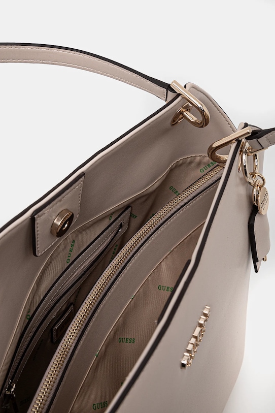 Большая сумка из коллекции Guess. Модель на молнии, выполнена из экокожи. - Содержит переработанный пластик. - Магнитная застежка. - Имеет три отделения, одно из которых застегивается на молнию. - Три внутренних кармана: один на молнии, два накладных. - Карман на молнии на задней стороне позволяет безопасно хранить телефон или другие мелкие предметы. - Модель на подкладке. - Вмещает формат А4. - Модель оснащена металлическими ножками, защищающими дно сумки. - В комплект модели входит брелок. - Входящий в комплект тканевый чехол защищает изделие от пыли. - Глубина: 11 см. - Высота: 28,5 см. - Ширина у основания: 30,5 см.