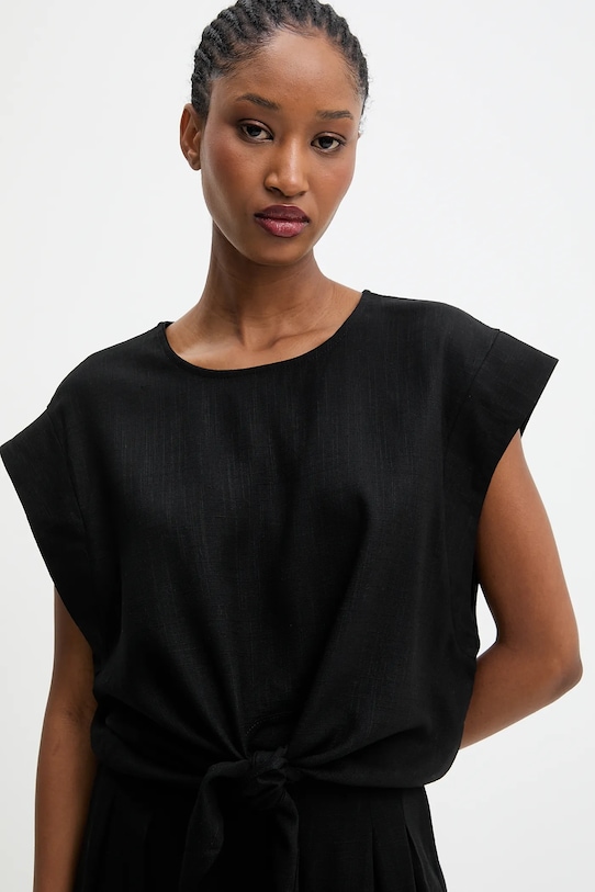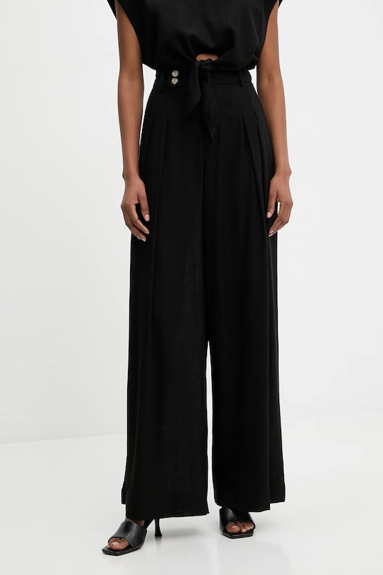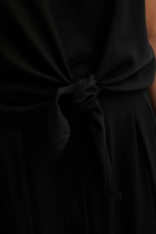 Блузка и брюки из коллекции Answear LAB, выполненные из тонкой, неэластичной ткани. Модель выполнена из исключительно комфортного, дышащего материала. - Свободный крой, обеспечивающий полную свободу движений. - Классический круглый вырез. - Застегивается на пуговицы сзади. - Декоративный переплет. - Модель с высокой талией, застежкой на пуговицы и молнию. - Два накладных кармана спереди. - Ширина талии: 37 см. - Ширина бедер: 47 см. - Высота талии: 35 см. - Ширина штанины внизу: 34 см. - Ширина штанины: 37 см. - Длина штанины: 108 см. - Длина: 47 см. - Ширина под мышками: 55 см. - Размеры указаны для размера: S.