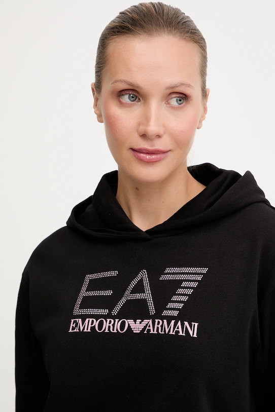 Эта толстовка с капюшоном из коллекции EA7 Emporio Armani выполнена из трикотажного полотна с аппликацией. Она изготовлена из исключительно комфортного материала с высоким содержанием хлопка. – Проект Armani Sustainability Project – Эта модель изготовлена из органических и переработанных материалов. Кроме того, в процессе производства используется меньше воды и энергии. - Простой дизайн, не стесняющий движений. - Модель с принтом и стразами. - Тонкий, эластичный трикотаж. - Рукава и низ изделия отделаны удобными эластичными манжетами. - Длина рукава: 58 см. - Длина: 58 см. - Ширина под мышками: 52 см. - Размеры указаны для размера: S.