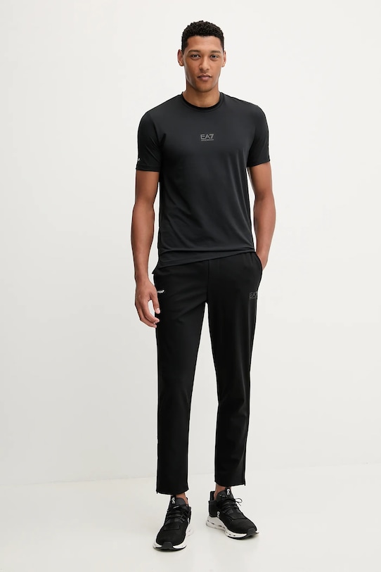 Эти спортивные брюки из коллекции EA7 Emporio Armani. Они изготовлены из эластичного материала. - Технология компрессии Vigor7 идеально поддерживает мышцы во время тренировок, позволяя сохранять полную свободу движений. - Простой дизайн, не стесняющий движений. - Молнии внизу штанин позволяют легко надевать и снимать. - Два боковых накладных кармана. - Эластичный пояс и дополнительная внутренняя регулировка ширины с помощью шнурков. - Ширина талии: 42 см. - Ширина бедер: 58 см. - Высота талии: 32 см. - Ширина штанины внизу: 17 см. - Ширина штанины: 33 см. - Длина по внутреннему шву: 73 см. - Размеры указаны для размера: M.