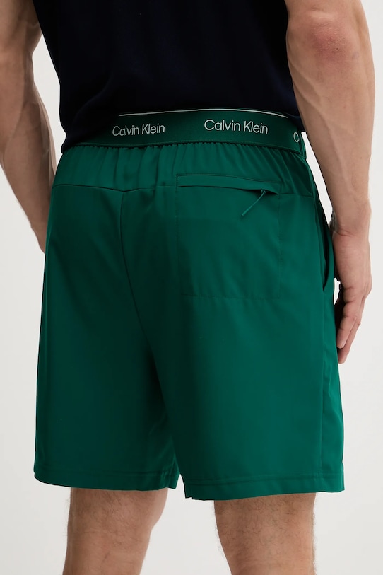 Тренировочные шорты из коллекции Calvin Klein Performance. Изготовлены из быстросохнущего материала. - Это изделие изготовлено из переработанного полиэстера. - Быстросохнущие свойства материала помогают сохранять сухость и комфорт даже во время интенсивных тренировок. - Простой дизайн, не стесняющий движений. - Эластичный пояс и дополнительная внутренняя регулировка ширины с помощью шнурков. - Два боковых накладных кармана. - Карман на молнии на ягодице. - Ширина талии: 41 см. - Ширина бедер: 53 см. - Высота талии: 32 см. - Ширина штанины внизу: 31 см. - Длина внешней части штанины: 46 см. - Размеры указаны для размера: M.