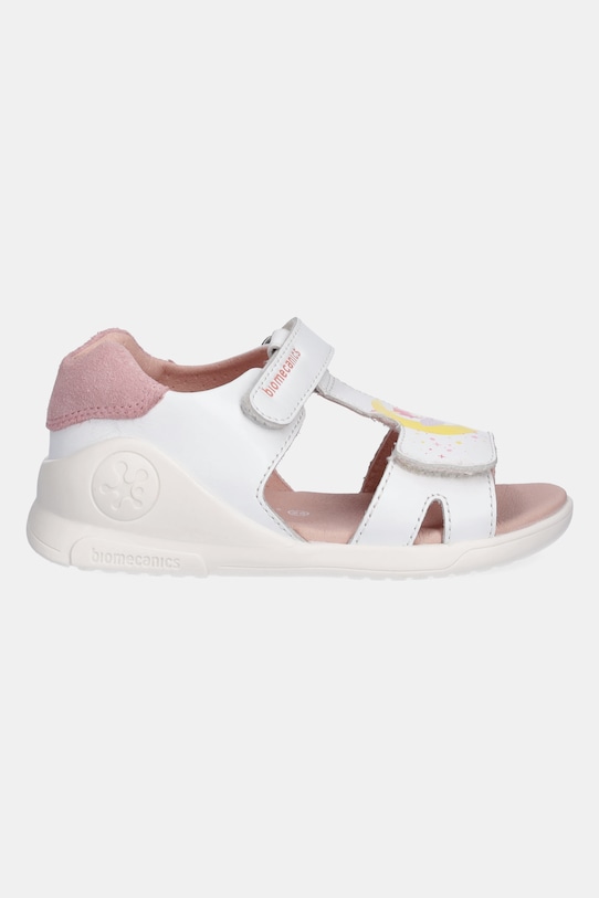 Детские сандалии из коллекции Biomecanics из натуральной кожи. Лёгкие и удобные, идеально подходят для повседневной носки. - Они были созданы в сотрудничестве с педиатрами и инженерами Института биомеханики в Валенсии. - Легко надевается и хорошо сидит благодаря застежке-липучке. - Они имеют боковой стабилизатор, который контролирует боковое движение стопы. - Они обеспечивают тепловой комфорт благодаря своим испарительным свойствам и перфорированной вставке. - Обеспечивает свободу движений в области голеностопа благодаря U-образному разрезу, который предотвращает давление на ахиллово сухожилие. - Резиновая подошва прочная и устойчивая к повреждениям.