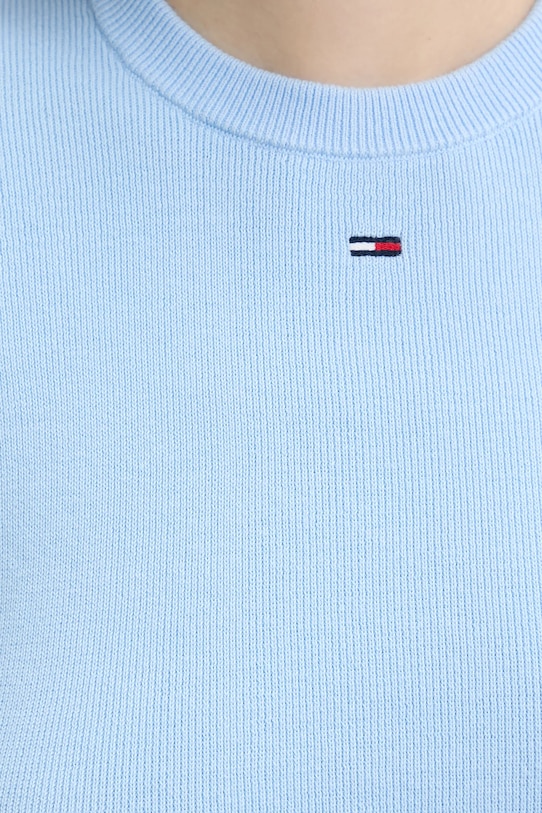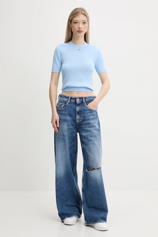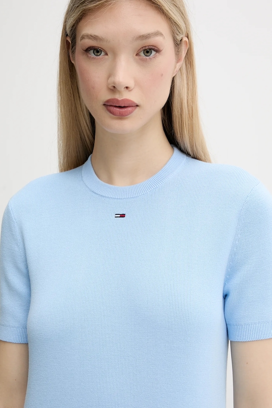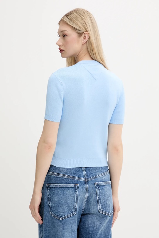 Этот свитер Tommy Jeans сшит из тонкого, эластичного трикотажа на основе дышащего хлопка. Модель частично построена из материалов, полученных в результате регенеративного земледелия, что позволяет фермерам подстраиваться под ритмы природы. Такой подход к земледелию обеспечивает более длительный отдых и восстановление растений, что приводит к улучшению питания сельскохозяйственных животных и оздоровлению почвы. - Короткий рукав. - Приталенный крой, подчеркивающий силуэт. - Классический круглый вырез. - Рукава и нижний край отделаны удобными эластичными манжетами. - Длина: 50 см. - Ширина под мышками: 40 см. - Размеры указаны для размера: S.