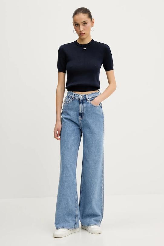 Этот свитер Tommy Jeans сшит из тонкого, эластичного трикотажа на основе дышащего хлопка. Модель частично построена из материалов, полученных в результате регенеративного земледелия, что позволяет фермерам подстраиваться под ритмы природы. Такой подход к земледелию обеспечивает более длительный отдых и восстановление растений, что приводит к улучшению питания сельскохозяйственных животных и оздоровлению почвы. - Короткий рукав. - Приталенный крой, подчеркивающий силуэт. - Классический круглый вырез. - Рукава и нижний край отделаны удобными эластичными манжетами. - Длина: 50 см. - Ширина под мышками: 40 см. - Размеры указаны для размера: S.