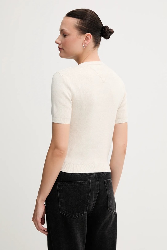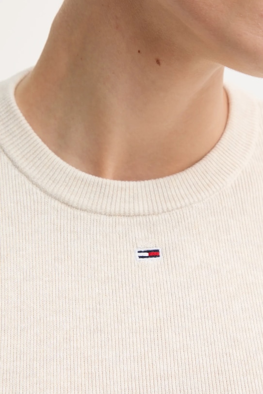 Этот свитер Tommy Jeans сшит из тонкого, эластичного трикотажа на основе дышащего хлопка. Модель частично построена из материалов, полученных в результате регенеративного земледелия, что позволяет фермерам подстраиваться под ритмы природы. Такой подход к земледелию обеспечивает более длительный отдых и восстановление растений, что приводит к улучшению питания сельскохозяйственных животных и оздоровлению почвы. - Короткий рукав. - Приталенный крой, подчеркивающий силуэт. - Классический круглый вырез. - Рукава и нижний край отделаны удобными эластичными манжетами. - Длина: 50 см. - Ширина под мышками: 40 см. - Размеры указаны для размера: S.