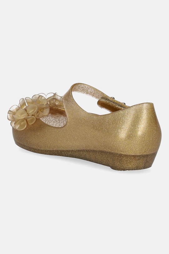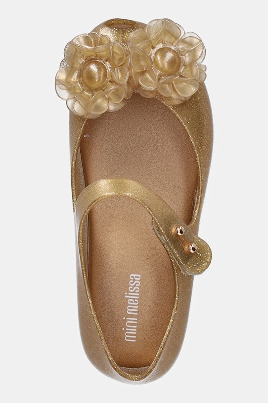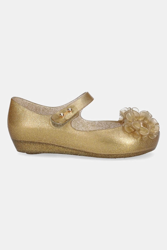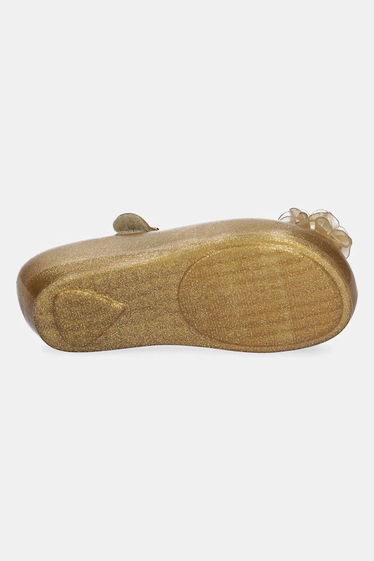 Детские балетки из коллекции Melissa из синтетического материала. Лёгкие и удобные, идеально подходят для повседневной носки. - Обувь бренда Melissa является веганской и производится в соответствии с принципами устойчивого развития, обеспечивая низкий уровень выбросов CO2 и активно участвуя в процессе переработки. - Обувь изготовлена из уникального ароматизированного материала Mel-flex — смеси пластика и резины с характерным запахом жевательной резинки. - Застежка-липучка позволяет легко надевать и снимать обувь. - Уютный салон. - Резиновая подошва прочная и устойчивая к повреждениям. - Длина вставки: 17 см. - Размеры указаны для размера: 27.