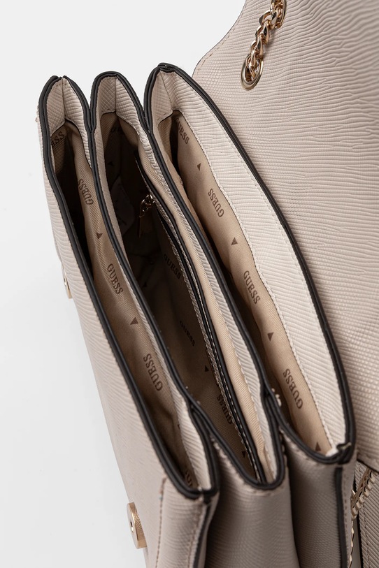 Небольшая сумочка из коллекции Guess. Модель на молнии, выполнена из экокожи. - Магнитная застежка. - Имеет три отделения. - Имеет внутренние отделения для карт. - Внутренний карман на молнии. - Модель на подкладке. - Не подходит для формата А4. - Карман на молнии на задней стороне позволяет безопасно хранить телефон или другие мелкие предметы. - Несъемный, регулируемый ремешок. - Входящий в комплект тканевый чехол защищает изделие от пыли. - Количество слотов для карт: 6. - Глубина: 8 см. - Высота: 16 см. - Ширина у основания: 24 см. - Минимальная длина ремешка: 76 см. - Максимальная длина ремня: 121 см.