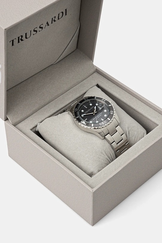 Часы из коллекции Trussardi. Модель имеет круглый циферблат и сегментированный браслет. Обратите внимание: оригинальные размеры товаров этого бренда указаны в итальянских единицах. Обратите внимание, что размеры на этикетках могут отличаться от заказанных из-за используемого курса конвертации.