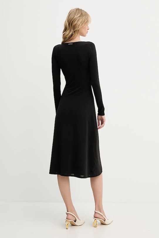 Это платье из коллекции Karl Lagerfeld выполнено из эластичного трикотажа. Полиэстер обеспечивает повышенную устойчивость к сминанию. - Модель длины миди. - Острый, облегающий вырез. - Длинный рукав. - Декоративные оборки. - Декоративные разрезы по бокам. - Дополнительный слой материала в виде подкладки. - Ширина под мышками: 42 см. - Длина: 120 см. - Размеры указаны для размера: S.