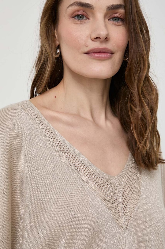 Этот свитер из коллекции Morgan выполнен из эластичного трикотажа. Модель выполнена из исключительно комфортного материала с высоким содержанием вискозы. - Частично изготовлен из LENZING ECOVERO, экологически чистого материала. LENZING ECOVERO производится из органической целлюлозы и древесной массы, используя на 50% меньше воды, чем популярная вискоза. - Декоративный, заостренный вырез. - Нижний край отделан удобной эластичной манжетой. - Свободный крой, обеспечивающий полную свободу движений. - Заниженная линия плеча. - Материал с металлической нитью. - Длина: 64 см. - Ширина под мышками: 67 см. - Размеры указаны для размера: S.