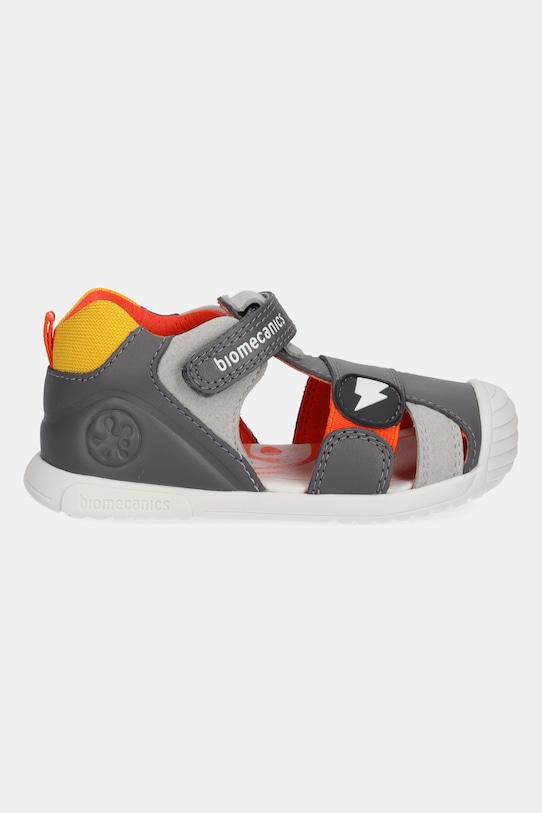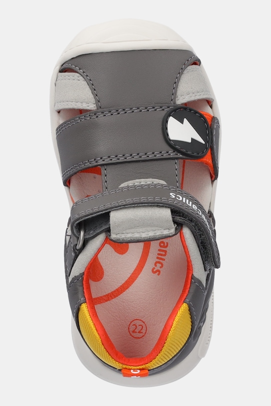 Детские сандалии из коллекции Biomecanics из комбинации экокожи и замши. Лёгкие и удобные, они идеально подходят для повседневной носки. - Они были созданы в сотрудничестве с педиатрами и инженерами Института биомеханики в Валенсии. - Легко надевается и хорошо сидит благодаря застежке-липучке. - Они имеют боковой стабилизатор, который контролирует боковое движение стопы. - Защищенный носок предохраняет пальцы ног от травм. - Подошва в форме «слоновьей лапки», перекрывающая пятку, обеспечивает устойчивость. - Обеспечивает свободу движений в области голеностопа благодаря U-образному разрезу, который предотвращает давление на ахиллово сухожилие.