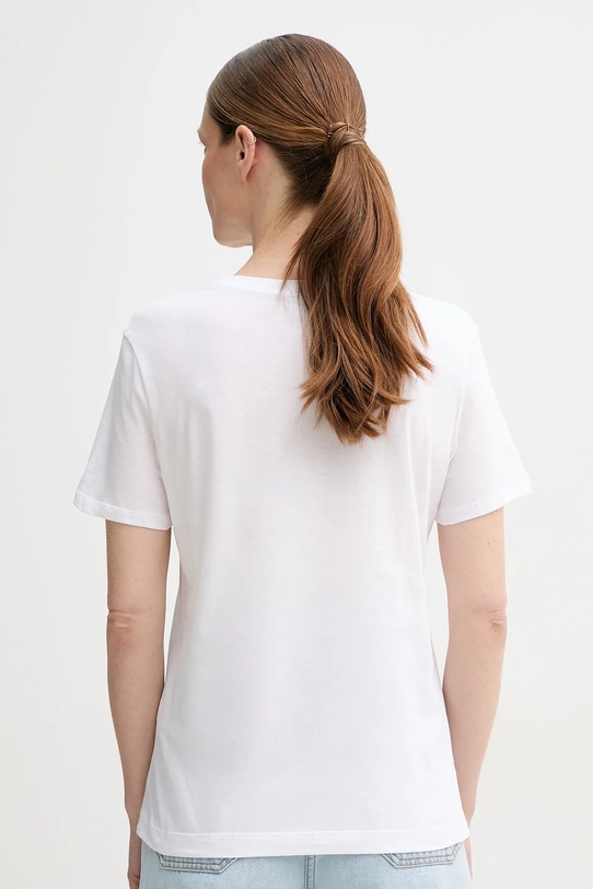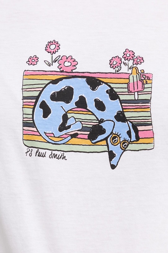 Эта футболка из коллекции PS Paul Smith выполнена из тонкой, эластичной ткани на основе дышащего хлопка. Этот продукт изготовлен из сертифицированного органического хлопка, выращенного и собранного с растений, не содержащих ГМО, без использования удобрений и пестицидов. Процесс производства органического хлопка более экологичен, и изделия из него также более экологичны. Наш хлопок сертифицирован по стандарту GOTS (Глобальный стандарт органического текстиля), что гарантирует его производство с заботой об окружающей среде и соблюдением прав работников. - Простой дизайн, не стесняющий движений. - Классический круглый вырез. - Модель с принтом на груди.