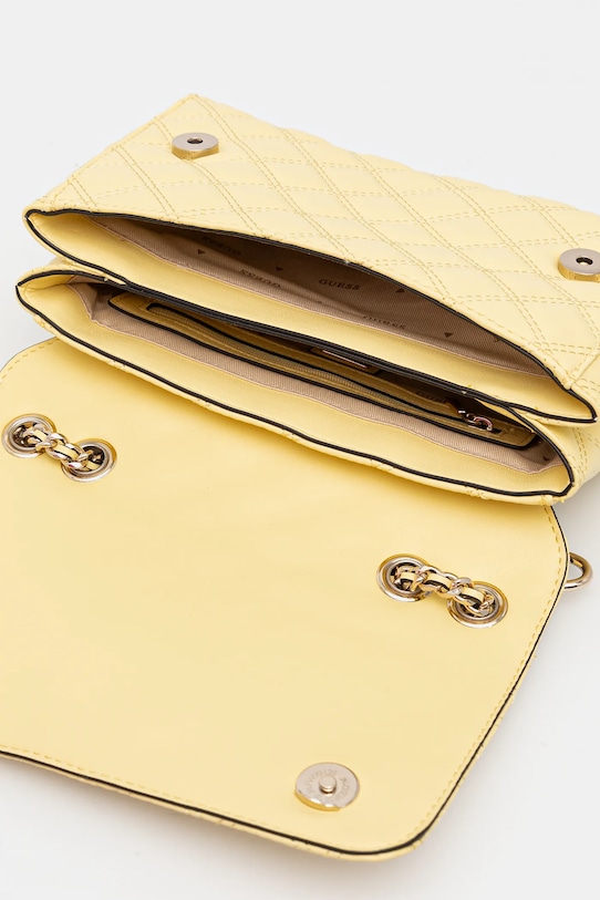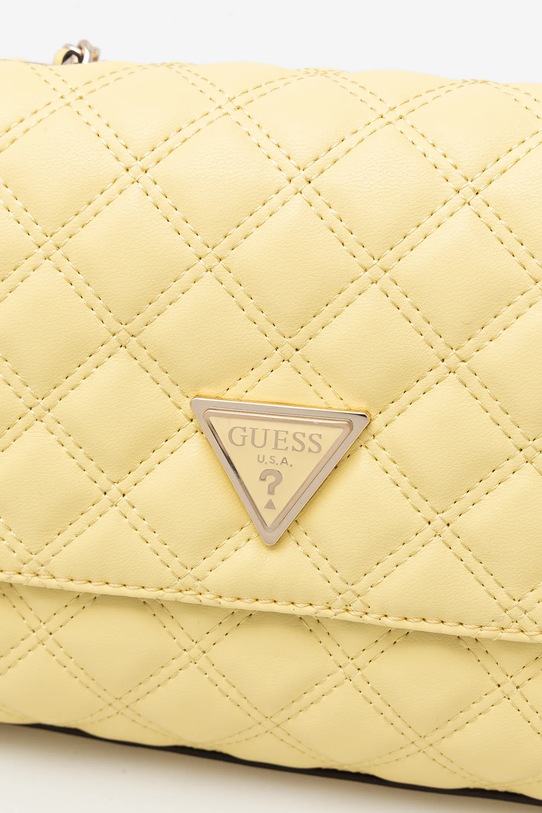 Небольшая сумочка из коллекции Guess. Модель на молнии, выполнена из экокожи. - Клапан застегивается на магнит. - Стеганая модель. - Несъемный, нерегулируемый ремешок. - Модель оснащена металлическими ножками, защищающими дно сумки. - Двухкамерная модель. - Внутренний карман на молнии для удобного и безопасного хранения телефона и других мелких предметов. - Количество слотов для карт: 6. - Сумка для ношения через плечо. - Не подходит для формата А4. - В комплект входит чехол для переноски. - Модель на подкладке. - Длина ремешка: 115 см. - Глубина: 7 см. - Высота: 17,5 см. - Ширина у основания: 22,5 см.