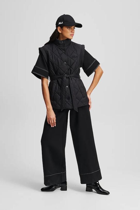 Жилет из коллекции Karl Lagerfeld. Переходный стиль, выполненный из гладкой ткани. Изделие изготовлено из исключительно комфортного и дышащего материала и идеально подходит для теплого времени года. - Простой дизайн, не стесняющий движений. - Поднятый воротник обеспечивает дополнительную защиту от холода. - Удобная застежка-кнопка позволяет легко надевать и снимать. - Текстильный ремешок в комплекте.