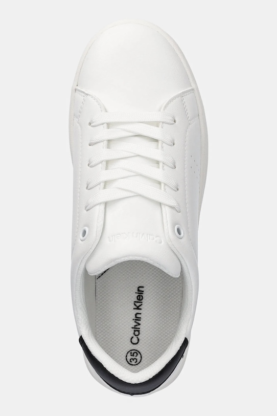 Эти детские кроссовки из коллекции Calvin Klein Jeans изготовлены из искусственной кожи. Верх не пористый, легко чистится влажной тканью. - Круглый, жёсткий носок. - Жесткий задник стабилизирует пятку и удерживает ногу в обуви, не давая ей выскальзывать во время движения. - Плоские шнурки устраняют давление на подъем стопы, обеспечивая хорошую посадку и комфорт. - Текстильная внутренняя часть комфортна для ног и облегчает содержание обуви в чистоте. - Профилированная, мягкая стелька гарантирует комфорт использования. - Резиновая подошва прочная и устойчивая к повреждениям. - Длина вставки: 22,5 см. - Размеры указаны для размера: 35.