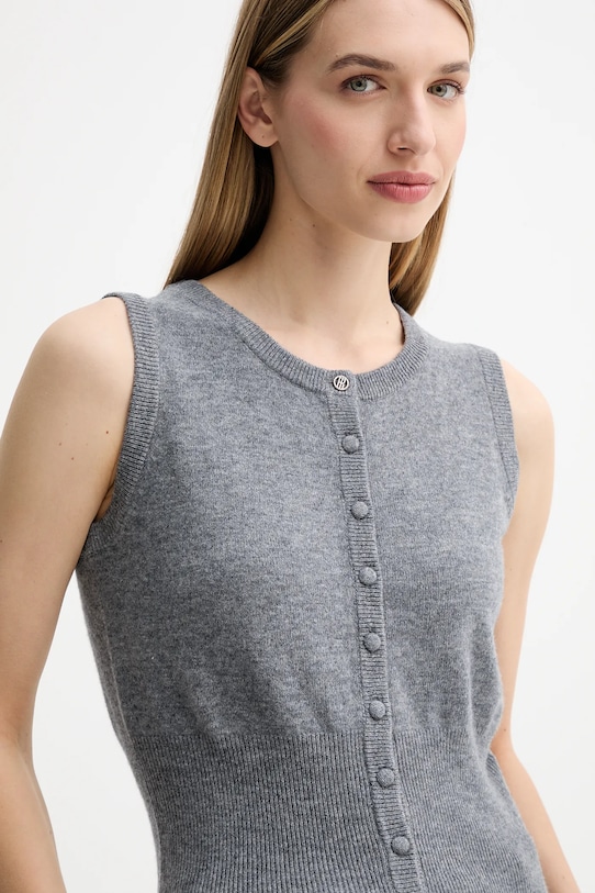 Этот жилет из коллекции Fracomina выполнен из тонкого трикотажа. Высокие терморегулирующие свойства шерсти позволяют согреться в холод и охладиться в жару. - Приталенный крой, подчеркивающий силуэт. - Удобная застежка на кнопки позволяет легко надевать и снимать. - Нижний край отделан удобной эластичной манжетой. - Длина: 50 см. - Ширина под мышками: 44 см. - Размеры указаны для размера: S.
