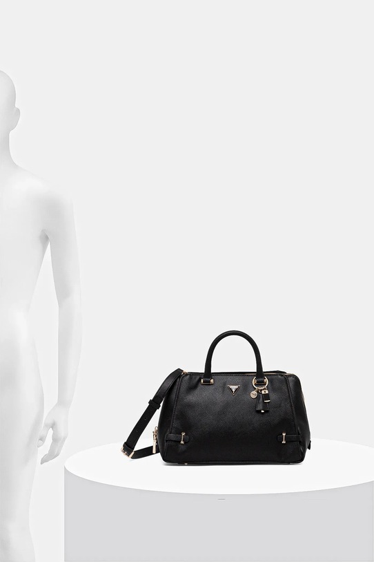 Сумка среднего размера из коллекции Guess. Модель с застёжкой-крючком выполнена из синтетического материала. - Трехкамерная модель. - Застежка-молния и магнитная застежка. - Имеет внутренние карманы, в том числе один на молнии. - Модель оснащена металлическими ножками, защищающими дно сумки. - Входящий в комплект тканевый чехол защищает изделие от пыли. - Имеет ручки и съемный регулируемый ремень. - Не подходит для формата А4. - Модель на подкладке. - Минимальная длина ремня: 110 см. - Максимальная длина ремня: 127 см. - Длина ручки: 30 см. - Глубина: 12 см. - Высота: 20 см. - Ширина у основания: 32 см.
