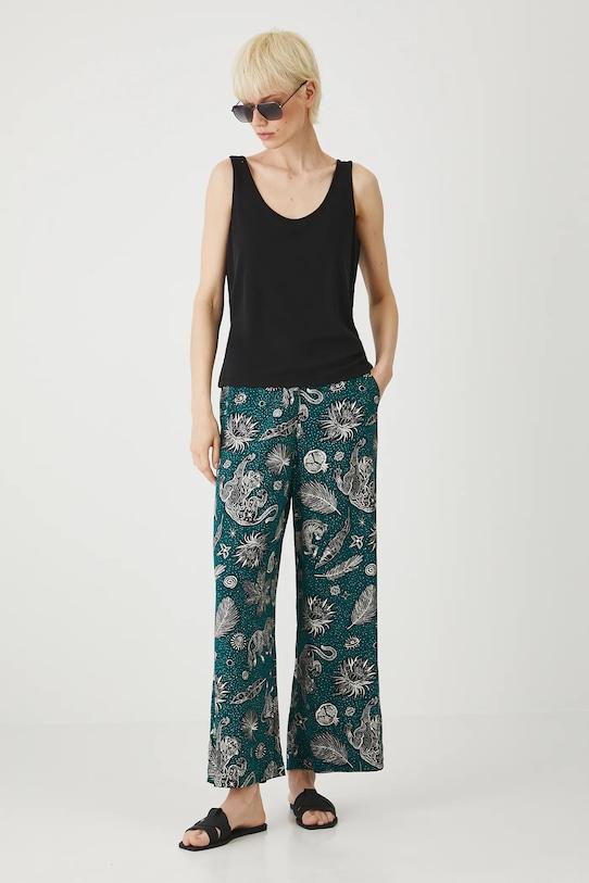 Брюки из коллекции «Медицина». Изготовлены из узорчатой ткани. - Материал с сертификатом OEKO-TEX Standard 100 гарантирует, что текстильные изделия, на которых он нанесен, не содержат вредных и потенциально опасных для человека и окружающей среды веществ. - Широкий фасон штанины. - Обхват талии обычный. - Эластичный пояс. - Накладные карманы. - Широкие штанины. - Узорчатая ткань. - Ширина талии (до растягивания): 36 см. - Ширина талии (после растяжения): 45,5 см. - Ширина бедер: 51 см. - Высота талии: 30 см. - Ширина штанины внизу: 33 см. - Длина по внутреннему шву: 67 см. - Размеры указаны для размера: S.