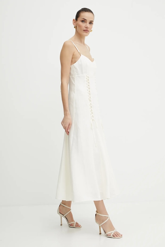 Платье из коллекции Twinset, выполненное из тонкой, неэластичной ткани. Эта модель выполнена из исключительно комфортного, дышащего материала. - Расклешенный крой. - Острый вырез. - Потайная застежка-молния и крючок. - Дополнительный слой материала в виде подкладки. - Нерегулируемые, несъемные лямки. - Длина: 135 см. - Ширина под мышками: 40 см. - Размеры указаны для размера: 36.