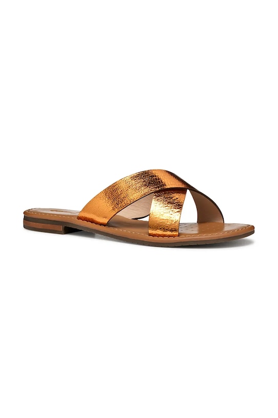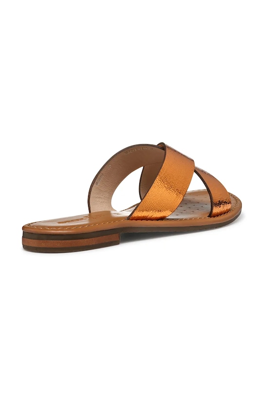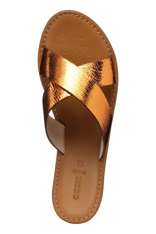 Шлёпанцы из коллекции Geox. Модель изготовлена из кожи с покрытием и имеет кожаную подкладку, которая обеспечивает комфорт стопе и предотвращает натирание, потёртости и появление неприятного запаха. - Geox Respira System: в них реализована технология Geox Respira, которая благодаря трехслойной подошве с дышащей системой перфорации улучшает вентиляцию, тем самым заботясь о здоровье ваших ног и обеспечивая комфорт при использовании обуви. - Гладкий материал. - Кожаный салон. - Кожаная стелька комфортна для стопы и предотвращает натирание, потертости и появление неприятного запаха. - Модель на плоской подошве. - Гибкая резиновая подошва.