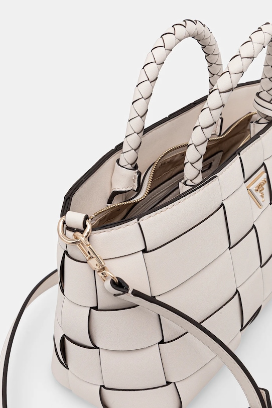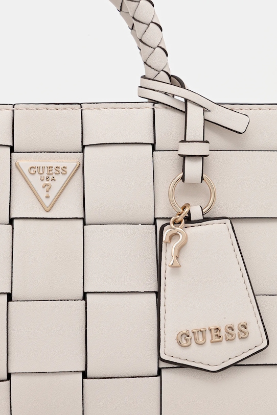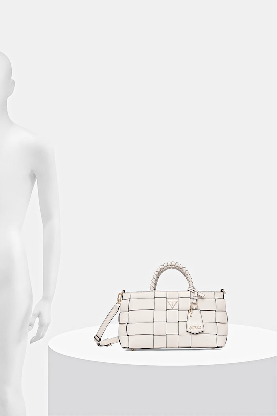 Небольшая сумочка из коллекции Guess. Модель на молнии, выполнена из экокожи. - Застежка-молния. - Модель на подкладке. - Не подходит для формата А4. - Имеет два отделения. - Три внутренних кармана: один на молнии, два накладных. - Сумка для ношения в руке или на плече. - Имеет ручки и съемный регулируемый ремень. - Модель оснащена металлическими ножками, защищающими дно сумки. - Входящий в комплект тканевый чехол защищает изделие от пыли. - Минимальная длина ремня: 105 см. - Максимальная длина ремня: 124 см. - Длина ручки: 28 см. - Глубина: 12 см. - Высота: 17,5 см. - Ширина у основания: 30 см.