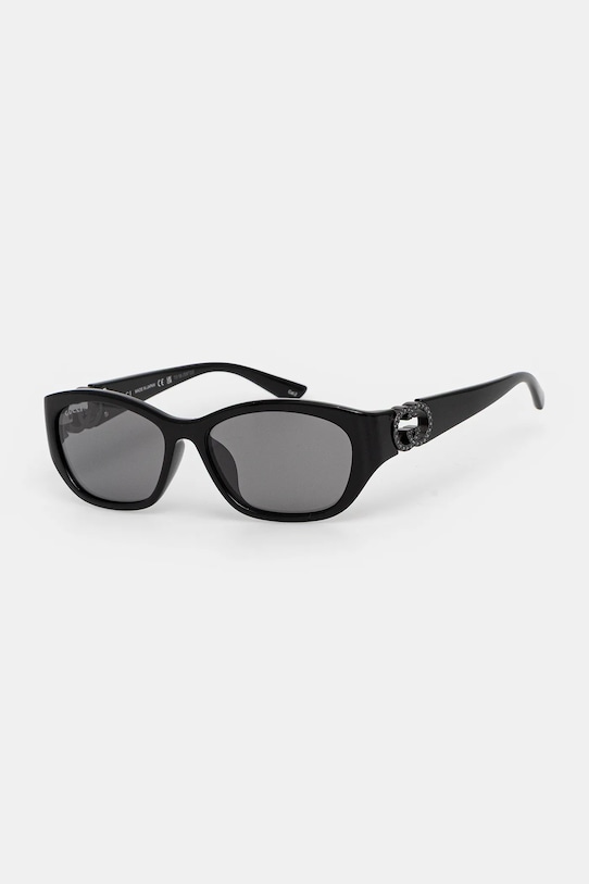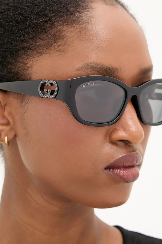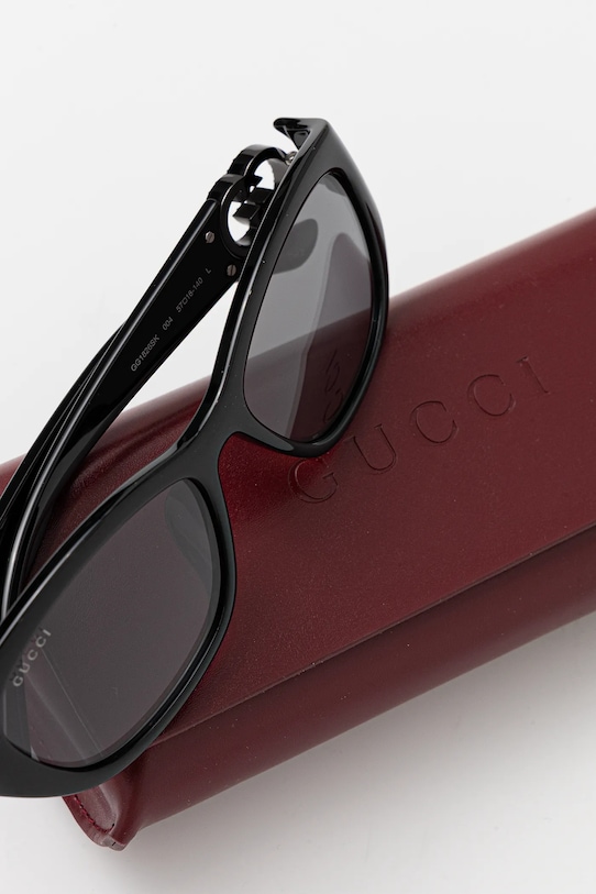 Солнцезащитные очки из коллекции Gucci. Эта модель с гладкими линзами и пластиковой оправой имеет защиту UV 400. Полученный вами футляр может отличаться от изображенного на фотографии. Производитель отправляет футляры случайным образом, поэтому выбрать футляр невозможно. - Форма оправы: овальная. - Фильтр UV 400 обеспечивает максимальную защиту от солнечного излучения. - Cat.2 (пропускает 18–43% света) — линзы со средней степенью затемнения. Очки с фильтром Cat.2 подходят для дней с низкой интенсивностью солнечного света. - В комплект модели входят чехол и салфетка для протирки очков. - Ширина рамы: 140 мм. - Ширина линзы: 57 мм.