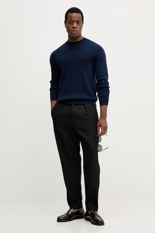 Этот свитер из коллекции Emporio Armani выполнен из тонкой эластичной пряжи. Натуральная шерсть легче традиционной и отличается исключительной мягкостью, нежностью и прочностью. - Обычная посадка. - Классический круглый вырез. - Рукава и нижний край отделаны ребристыми манжетами. - Длина рукава: 71 см. - Длина: 65 см. - Ширина под мышками: 54 см. - Размеры указаны для размера: M.