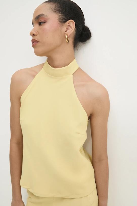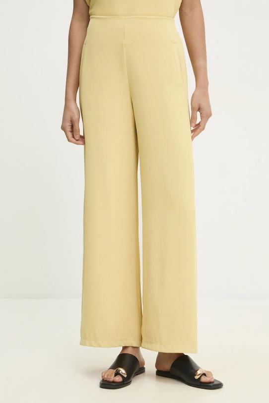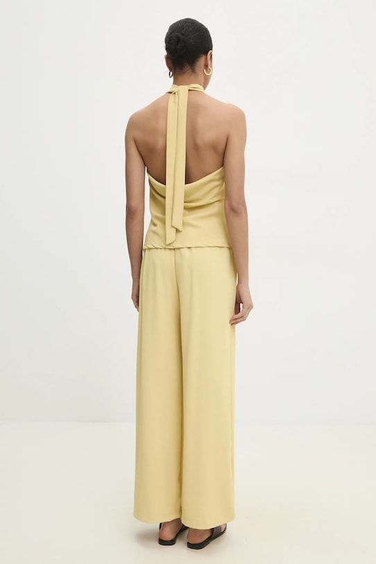 Блузка и брюки из коллекции Answear.LAB выполнены из гладкой ткани. Полиэстер обеспечивает повышенную устойчивость к сминанию. - Простой дизайн, не стесняющий движений. - Модель с водолазкой. - Модель с регулируемой шнуровкой. - Высокая талия с резинкой предотвращает скольжение во время движения. - Прямая нога полной длины. - Два боковых накладных кармана. - Длина: 55 см. - Ширина под мышками: 43 см. - Ширина талии: 35 см. - Ширина бедер: 49 см. - Высота талии: 32 см. - Ширина штанины внизу: 28 см. - Ширина штанины: 31 см. - Длина внешней части штанины: 97 см. - Размеры указаны для размера: S.