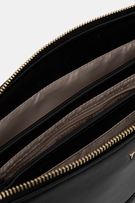 Небольшая сумочка из коллекции Twinset. Модель на молнии, выполнена из экокожи. - Застежка-молния. - Имеет три отделения. - Внутренний карман на молнии для удобного и безопасного хранения телефона и других мелких предметов. - Модель на подкладке. - Не подходит для формата А4. - Имеет регулируемую ручку и съемный регулируемый ремень. - Входящий в комплект тканевый чехол защищает изделие от пыли. - Глубина: 6 см. - Высота: 18,5 см. - Ширина у основания: 28,5 см. - Максимальная длина ручки: 62 см. - Минимальная длина ручки: 54 см. - Минимальная длина ремня: 106 см. - Максимальная длина ремня: 120 см.