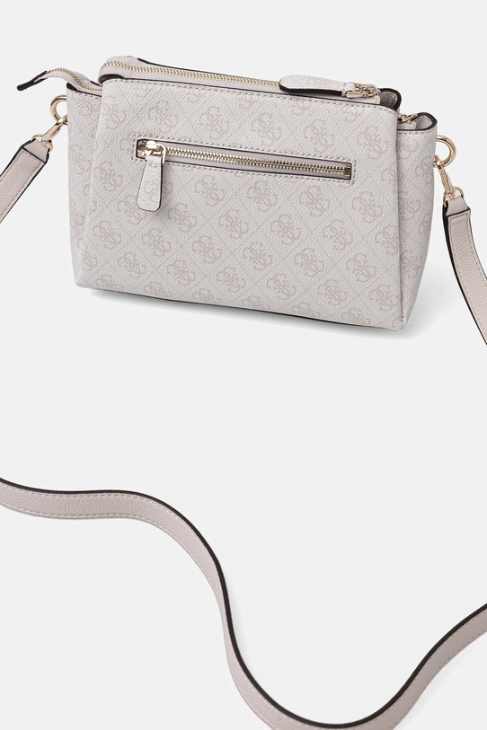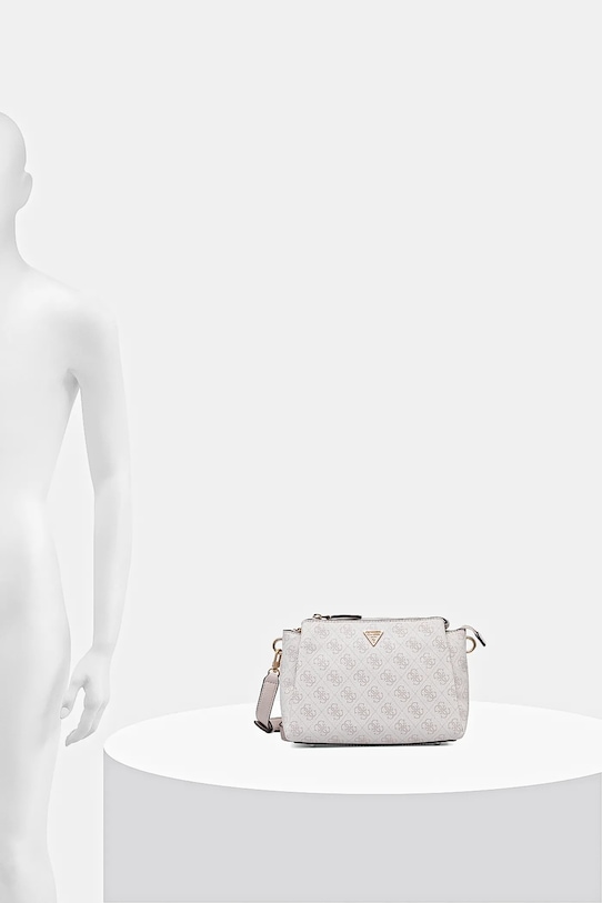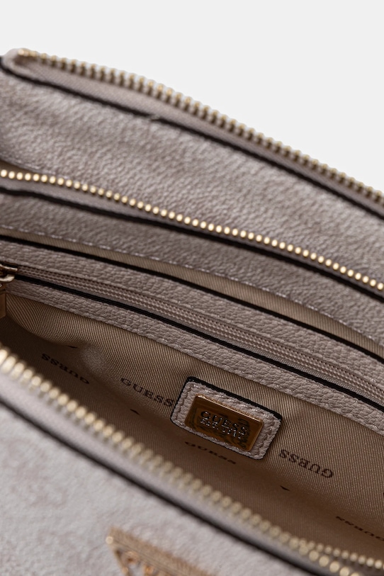 Небольшая сумочка из коллекции Guess. Модель на молнии, выполнена из экокожи. - Содержит переработанный пластик. - Застежка-молния. - Имеет три отделения: два открытых и одно на молнии. - Модель на подкладке. - Три внутренних кармана: один на молнии, два накладных. - Карман на молнии сзади. - Модель оснащена металлическими ножками, защищающими дно сумки. - Сумка для ношения в руке или на плече. - Присоединяемый длинный ремешок с регулировкой. - Не подходит для формата А4. - Входящий в комплект тканевый чехол защищает изделие от пыли. - Глубина: 8 см. - Высота: 18 см. - Ширина у основания: 25 см.