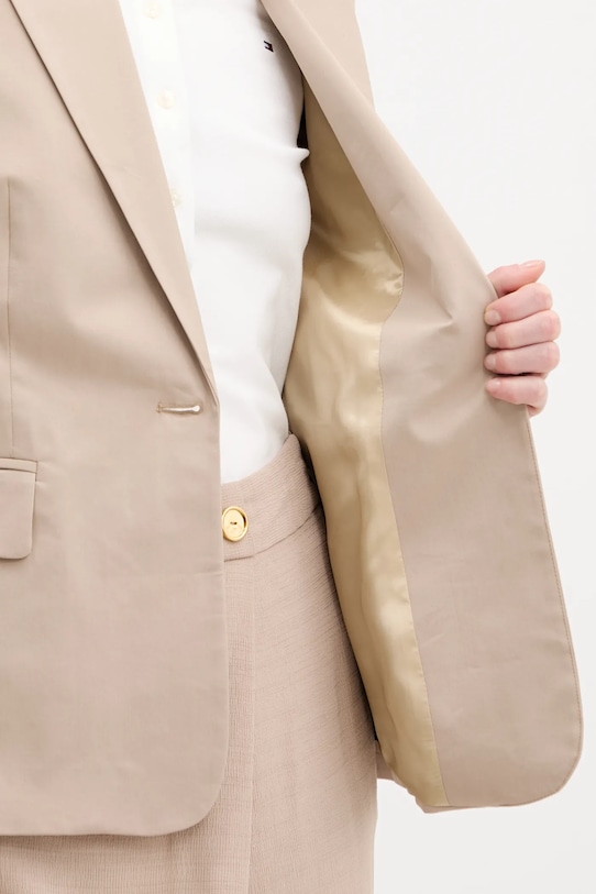 Этот блейзер из коллекции Tommy Hilfiger выполнен из гладкой ткани. Модель выполнена из исключительно комфортного материала с высоким содержанием хлопка. - Лиоцелл — это волокно из древесной целлюлозы, которое производится в ходе экологически устойчивого процесса производства, без использования токсичных веществ. - Этот продукт частично изготовлен из органического хлопка. - Простой дизайн. - Застежка на пуговицы. - Модель на подкладке. - У него есть щель. - В плечах вшиты подкладки. - Модель с карманами, декорированными клапанами. - Длина: 69 см. - Ширина под мышками: 45,5 см. - Размеры указаны для размера: 36.