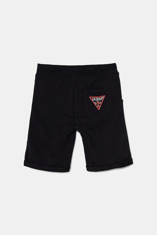 Детские шорты из коллекции Guess из эластичного материала, обеспечивающего комфорт и свободу движений. Изготовлены из дышащего материала с высоким содержанием хлопка. - Этот продукт изготовлен из сертифицированного органического хлопка, который выращен и собран из растений, не содержащих ГМО, без использования химических удобрений и пестицидов. - Простой дизайн, не стесняющий движений. - Эластичный пояс и дополнительная регулировка ширины с помощью шнурков для предотвращения сползания во время движения. - Прямая нога полной длины. - Два боковых накладных кармана. - Накладной карман сзади, без застежки. - Модель с принтом.