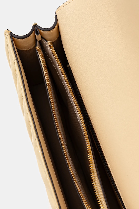 - Несъемный, регулируемый ремешок. - Застежка-кнопка. - Имеет три отделения: два открытых и одно на молнии. - Имеет отделение для карт. - Декоративная деталь. - Стеганая модель. - В комплект входит чехол для переноски. - Не подходит для формата А4. - Глубина: 6 см. - Высота: 15 см. - Ширина у основания: 21 см.