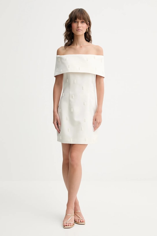 Это платье из коллекции Rotate выполнено из ткани с аппликацией. Полиэстер обеспечивает повышенную устойчивость к сминанию. - GRS (Global Recycle Standard) — сертификат, гарантирующий, что продукт изготовлен из переработанных материалов, произведен с соблюдением принципов устойчивого развития на каждом этапе производства. - Приталенный крой, подчеркивающий силуэт. - Модель на подкладке. - Застегивается на потайную молнию и крючок сзади. - Тонкая, неэластичная ткань. - Сатиновая отделка. - Длина: 74 см. - Ширина под мышками: 44 см. - Ширина талии: 39 см. - Ширина бедер: 49 см. - Размеры указаны для размера: 36.