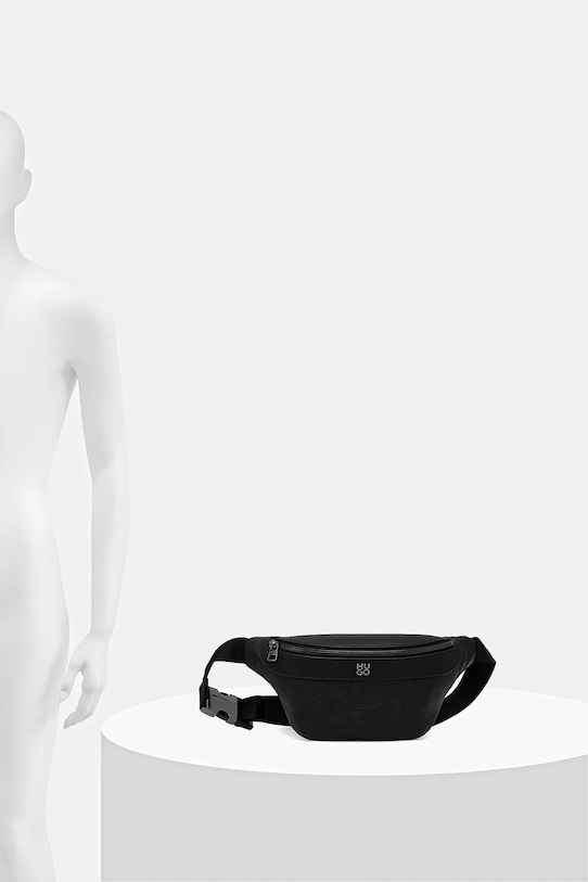Поясная сумка из коллекции HUGO. Изготовлена из экокожи. — Модель частично изготовлена из переработанного полиуретана. Это снижает потребление воды и энергии, а также уменьшает количество отходов. - Однокамерная модель. - Застежка-молния. - Внутренний накладной карман для удобного и безопасного хранения телефона и других мелких предметов. - Модель на подкладке. - Не подходит для формата А4. - Несъемный регулируемый ремешок позволяет индивидуально подогнать посадку. - Глубина: 7,5 см. - Высота: 15 см. - Ширина у основания: 21 см. - Минимальная длина ремешка: 27 см. - Максимальная длина ремня: 115,5 см.