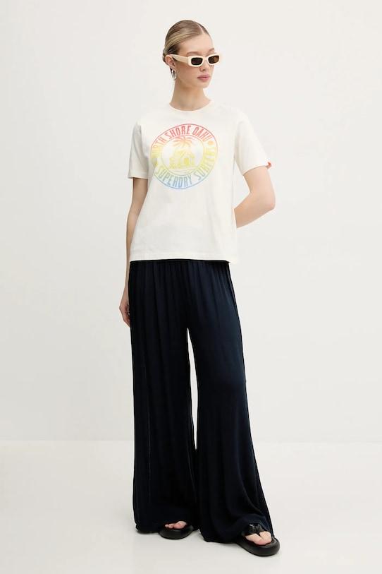 Эти брюки Superdry изготовлены из гладкой ткани. Они невероятно удобны и дышащие, идеально подходят для тёплого времени года. - Модель изготовлена из вискозы, которая производится из древесной целлюлозы, получаемой из деревьев, выращенных в сертифицированных лесах. - Брюки свободные в области бедер и ягодиц. - Прямая нога полной длины. - Высокая талия с резинкой предотвращает скольжение во время движения. - Ширина талии: 34 см. - Ширина бедер: 61 см. - Высота талии: 35 см. - Ширина штанины по низу: 39 см. - Ширина штанины: 35 см. - Длина внешней части штанины: 108,5 см. - Размеры указаны для размера: S.