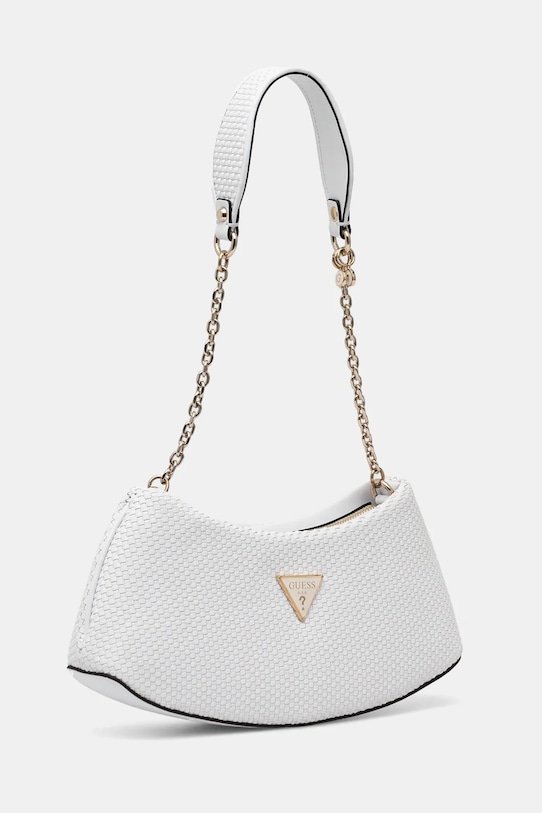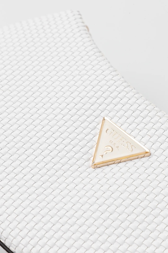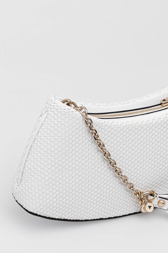 Небольшая сумочка из коллекции Guess. Модель на молнии выполнена из экокожи. В комплект входит тканевый пыльник для защиты изделия от пыли. - Отделение на молнии. - Имеет внутренний карман на молнии и отделения для карт. - Усиленное дно сумки позволяет изделию долго сохранять форму. - Сумка для ношения в руке или на плече. - Длинная ручка. - Не подходит для формата А4. - Модель на подкладке. - Входящий в комплект тканевый чехол защищает изделие от пыли. - Количество внутренних карманов на молнии: 1. - Количество слотов для карт: 6. - Глубина: 7 см. - Высота: 12,5 см. - Ширина у основания: 31 см.