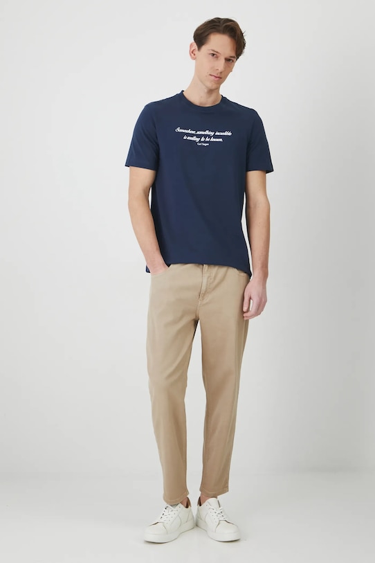 Брюки из коллекции «Медицина». Изготовлены из ткани диагонального переплетения. - Материал с сертификатом OEKO-TEX Standard 100 гарантирует, что текстильные изделия, на которых он нанесен, не содержат вредных и потенциально опасных для человека и окружающей среды веществ. - Морковный стиль. - Обхват талии обычный. - Застежка на пуговицы и молнию. - Накладные карманы. - Материал с эффектом стирки. - Ткань саржевого переплетения. - Ширина талии: 44,5 см. - Ширина бедер: 54,8 см. - Высота талии: 29,3 см. - Ширина штанины внизу: 17 см. - Длина по внутреннему шву: 71 см. - Размеры указаны для размера: L.