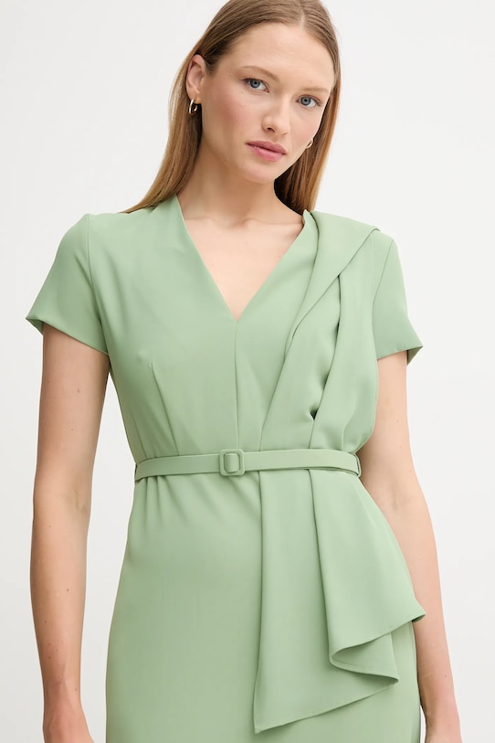 Это платье из коллекции Sandro Ferrone выполнено из тонкой, слегка эластичной ткани. Высококачественное изделие, произведено в Италии. - Приталенный крой, подчеркивающий силуэт. - Декоративный, заостренный вырез. - Короткий рукав. - Застежка-молния сзади. - Текстильный ремешок в комплекте. - Длина: 109 см. - Ширина под мышками: 46 см. - Размеры указаны для размера: 36.