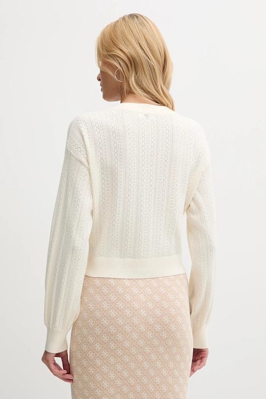 Этот кардиган из коллекции Guess выполнен из тонкого трикотажа. Он изготовлен из исключительно комфортного материала с высоким содержанием вискозы. - Частично изготовлен из LENZING ECOVERO, экологически чистого материала. LENZING ECOVERO производится из органической целлюлозы и древесной массы, используя на 50% меньше воды, чем популярная вискоза. - Простой дизайн, не стесняющий движений. - Удобная застежка на кнопки позволяет легко надевать и снимать. - Рукава и низ изделия отделаны манжетами для защиты от неблагоприятных погодных условий. - Длина: 46 см. - Ширина под мышками: 50 см. - Размеры указаны для размера: S.
