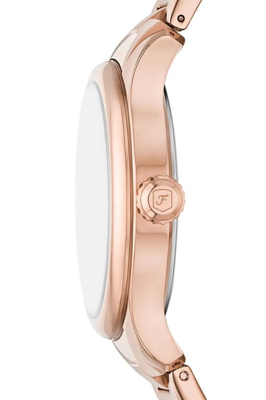Часы из коллекции Fossil. Модель с круглым циферблатом и сегментированным браслетом. Упакованы в фирменную коробку. - Материал корпуса и браслета: нержавеющая сталь. - Корпус покрыт технологией PVD, что делает его более устойчивым к царапинам. - Форма корпуса: круглая. - Сегментированный браслет. - Водонепроницаемость: WR. 50M (5ATM) - устойчив к брызгам, плаванию на поверхности. - Стекло: минеральное (закаленное, очень устойчивое к ударам, трудно царапается). - Механизм: кварцевый, питание от батареек. - На нем есть штамп с датой. - Ширина корпуса: 38 мм. - Толщина корпуса: 10 мм. - Ширина ремешка: 18 мм.