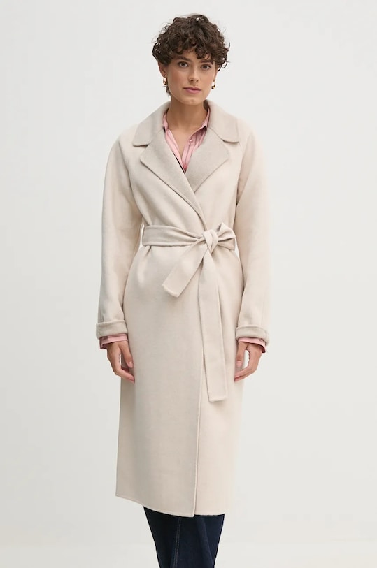 Это пальто из коллекции OUI без подкладки сшито из гладкой ткани. Высокое содержание шерсти обеспечивает защиту от холода, а добавление полиэстера повышает устойчивость к сминанию. - Свободный крой, обеспечивающий полную свободу движений. - Неутепленная модель без подкладки. - Закругленные лацканы. - Рукава реглан благодаря своей конструкции обеспечивают большую свободу движений. - Застежка-кнопка. - Текстильный ремешок в комплекте. - Два боковых накладных кармана. - Плотный материал. - Длина рукава (от воротника): 78 см. - Длина: 122 см. - Ширина под мышками: 50 см. - Размеры указаны для размера: 36.