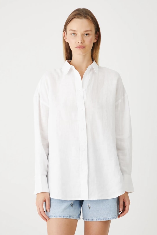 Рубашка из коллекции «Медицина». Изготовлена из льняной ткани, с воротником. - Материал с сертификатом OEKO-TEX Standard 100 гарантирует, что текстильные изделия, на которых он нанесен, не содержат вредных и потенциально опасных для человека и окружающей среды веществ. - Натуральный, воздушный и прочный материал, изготовлен из 100% льна. - Обычная посадка. - Длинный рукав. - Заниженная линия плеча. - Манжеты на пуговицах. - Застежка на пуговицы. - Модель с воротником. - Гладкая ткань. - Длина рукава (от воротника): 74,5 см. - Длина: 74 см. - Ширина груди: 60 см. - Размеры указаны для размера: S.