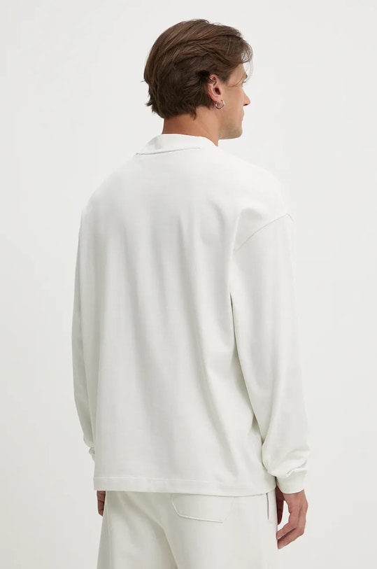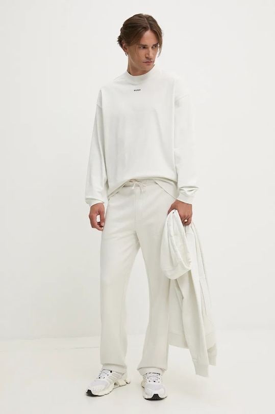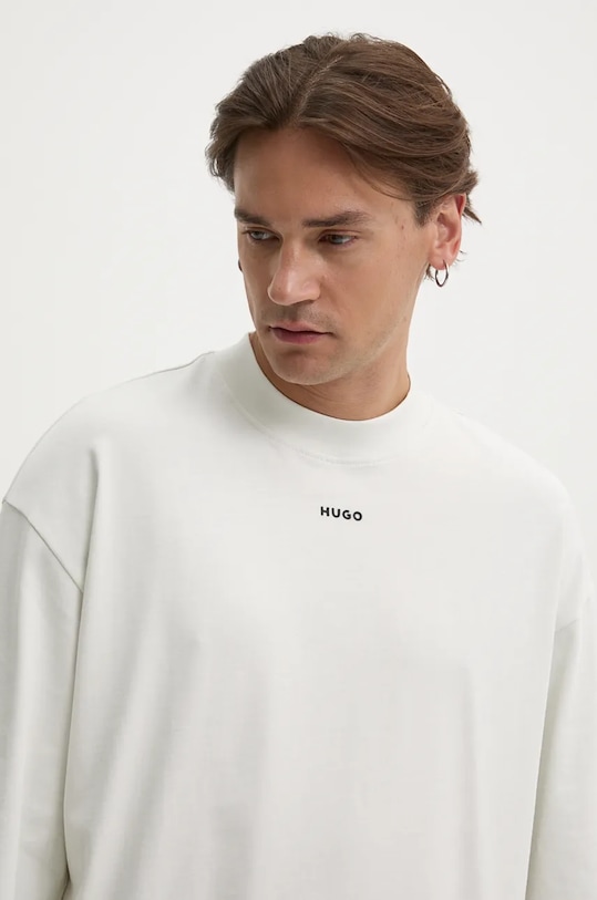 Этот лонгслив из коллекции HUGO выполнен из тонкого, слегка эластичного трикотажа. Модель выполнена из дышащего хлопкового материала. - Инициатива «Clean Up Your Act» — поддержка более устойчивых способов производства, которые снижают негативное воздействие на планету. - Свободный крой, обеспечивающий полную свободу движений. - Длинный рукав. - Крой рукава со спущенной линией плеча не ограничивает подвижность. - Рукава отделаны удобными эластичными манжетами. - Классический круглый вырез. - Длина рукава (от горловины): 84 см. - Длина: 74 см. - Ширина под мышками: 62 см. - Размеры указаны для размера: M.