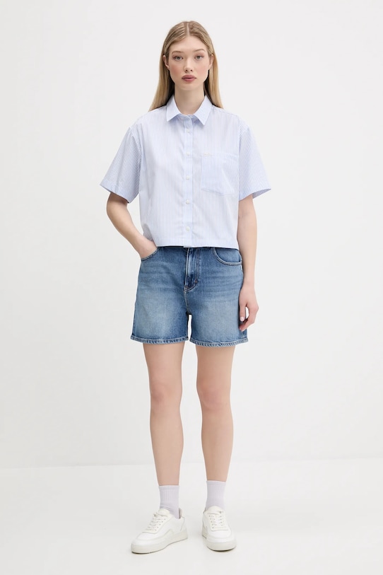 Эти шорты из коллекции Tommy Jeans изготовлены из денима. Они изготовлены из исключительно комфортного материала с высоким содержанием хлопка. - Эта модель содержит регенерированные хлопковые волокна. Новые волокна и пряжа производятся из старых текстильных отходов и используются для производства новой одежды. - Модель с высокой талией, застежкой на пуговицы и молнию. - Три накладных кармана спереди. - Два накладных кармана на ягодицах. - Ширина талии: 36 см. - Ширина бедер: 48 см. - Высота талии: 31 см. - Ширина штанины внизу: 29 см. - Длина внешней части штанины: 38 см. - Размеры указаны для размера: 27.