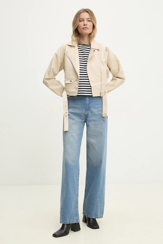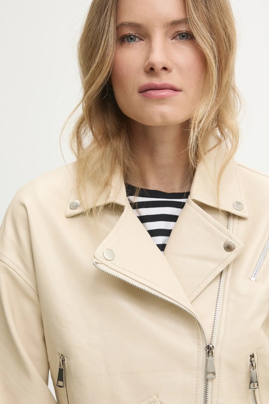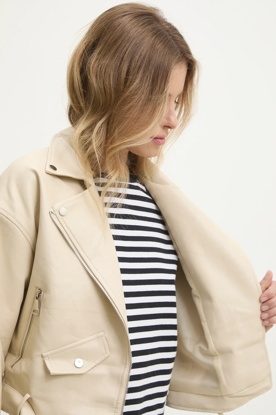 Байкерская куртка из коллекции Answear.LAB. Модель без подкладки выполнена из экокожи. В конструкции использованы высококачественные материалы. - Простой дизайн, не стесняющий движений. - Удобная застежка-молния позволяет легко надевать и снимать. - Крой рукава со спущенной линией плеча не ограничивает подвижность. - Модель с воротником. - Два прорезных боковых кармана на молнии. - Имитация нагрудных карманов. - Ремешок из эко-кожи в комплекте. - Неутепленная модель с подкладкой. - Длина рукава (от воротника): 70 см. - Длина: 48 см. - Ширина под мышками: 48 см. - Размеры указаны для размера: S.