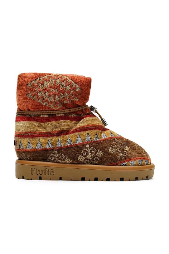 Зимние ботинки из коллекции Flufie. Изготовлены из текстильного материала и наполнены натуральным пухом. - Круглый, мягкий нос. - Верх с повышенной устойчивостью к проникновению воды повышает комфорт использования. - Текстильная внутренняя часть комфортна для ног и облегчает содержание обуви в чистоте. - Стелька из пены с эффектом памяти адаптируется к форме стопы и повышает комфорт при ношении. - Слегка усиленный задник. - Эластичный внутренний носок с манжетой адаптируется к форме стопы и сохраняет тепло. - Нескользящая рифленая подошва. - Наполнитель из гусиного пуха обеспечивает идеальный тепловой комфорт.